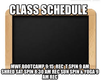Meme Creator Funny Class Schedule Mwf Bootcamp 9 15 Rec T Spin 9 Am Shred Sat Spin 8 30 Am Rec S Meme Generator At Memecreator Org